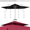 350x350cmcm čtvercový dvouhlavý zahradní deštník s hliníkovou boční tloušťkou těla 7x7cm při použití dovážené španělské akrylové tkaniny chrání škodlivé UV paprsky parného slunce letních měsíců a vytváří prostorné oblasti baldachýnu. Můžete zavolat našim zástupcům zákazníků a získat informace o našich modelech deštníků s třásněmi a bez okrajů, na které si můžete vytisknout logo vaší kavárny a restaurace.