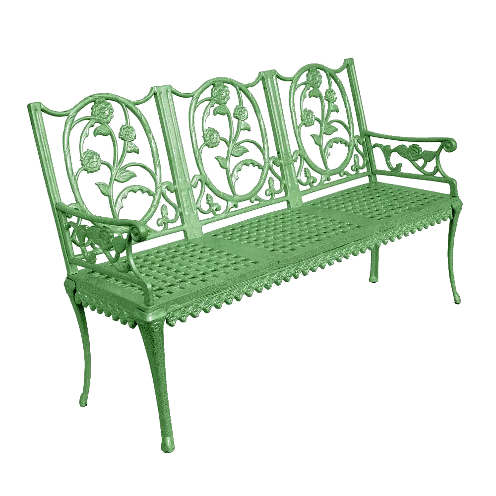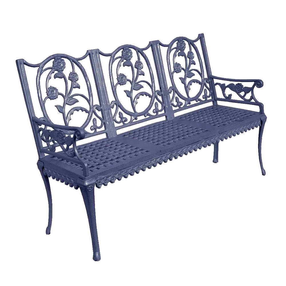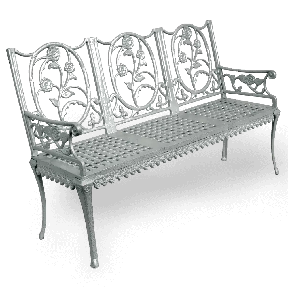 Silver gray aluminum cast electrostatic painted seating bench with Ivy Rose motif is a decorative product that can be used outdoors and indoors. You can contact us on our Whatsapp line for different color options.