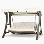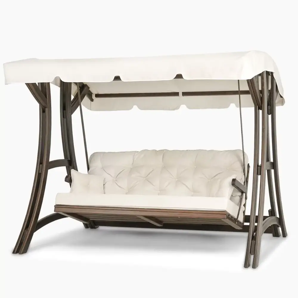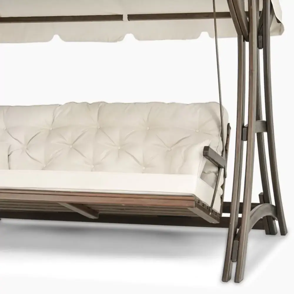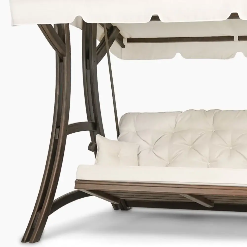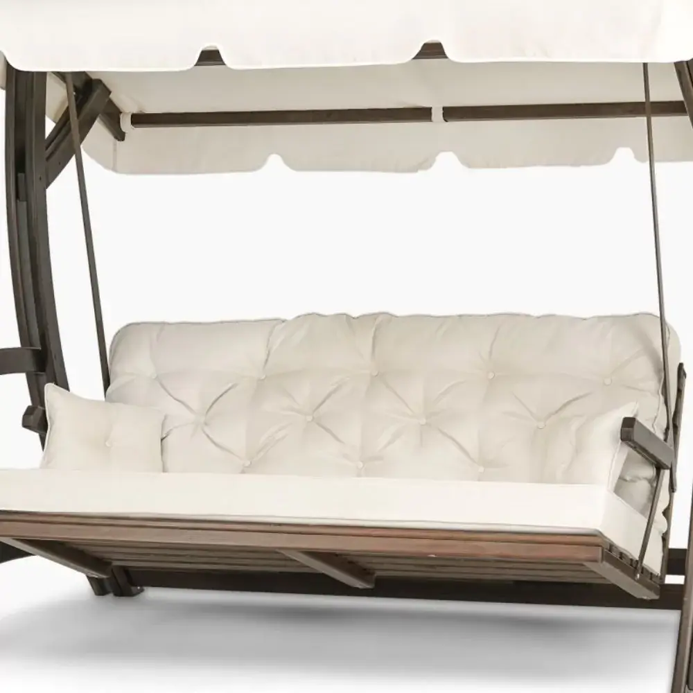 The upholstery of the Comfort wooden garden swing for 3 people, which is made of spruce wood, is made of waterproof polyester fabric. 1 In all of the tiles. grade beads are used silicone fiber. The upholstery is zippered and the bead can be washed in the washing machine by draining the silicone fiber.