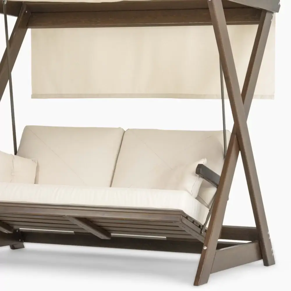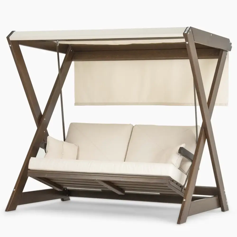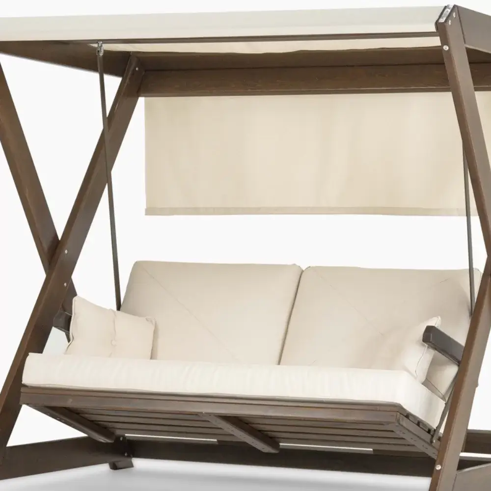The Holox wooden garden swing with cream-colored seating cushion, which makes you feel the elegance and comfort that you can use in the garden of your villa, on your terrace, in your winter garden at the same time, is made of long-lasting and durable iroko wood.