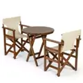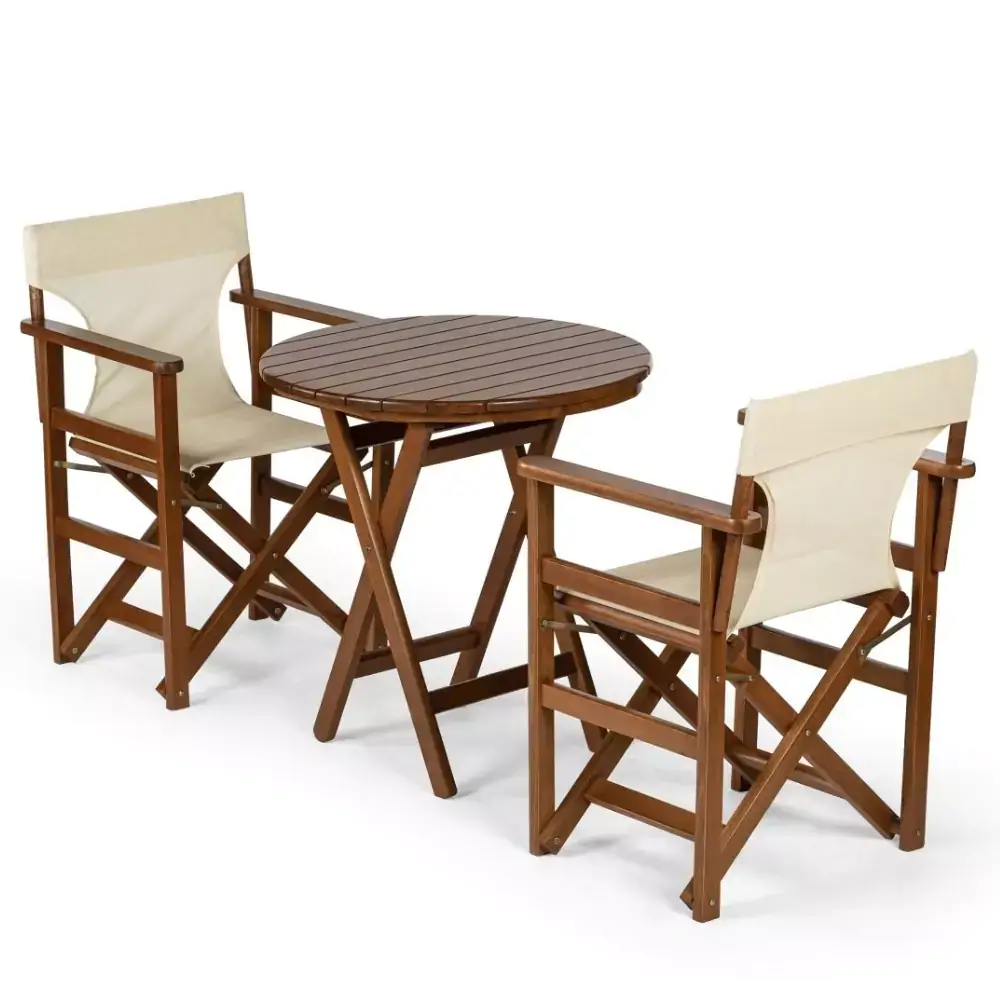 El juego de jardín KLE 14 Manager consta de 1 mesa redonda de madera modelo KLE Buzludja plegable con un diámetro de 60 cm y 2 sillas plegables para gerentes de 89x64x56 cm. La mesa de balcón de madera de carpe horneado también está disponible en tamaños de 70 cm de diámetro y 90 cm de diámetro. En la mesa se puede utilizar vidrio rodado y templado transparente o ahumado con un diámetro de 60 cm y un grosor de 8 mm. La tela de la silla de jardín wooden manager es de tela italiana de PVC, es impermeable y se puede usar fácilmente en los lados de la piscina, las barras de la piscina.