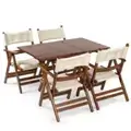 El juego de jardín modelo acolchado KLE Athens para 4 personas consta de 1 mesa plegable rectangular de madera modelo Athens de 80x140 cm y 4 sillas plegables acolchadas Athens de 89x64x56 cm. El juego de jardín de madera, que está hecho de madera de carpe, que está pintado y barnizado resistente a las condiciones climáticas exteriores, es uno de los productos cómodos preferidos para cafés y restaurantes de verano. Dado que la mesa y las sillas son plegables, se pueden almacenar fácilmente.