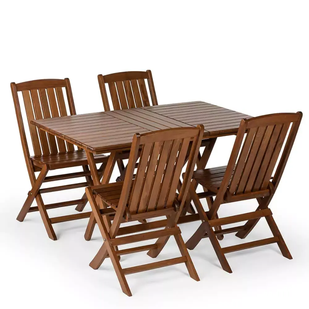 El juego de jardín modelo KLE 11 para 4 personas está compuesto por una mesa plegable Athens de 80x140 cm y 4 sillas plegables Acropol. Si lo desea, puede crear su propio conjunto con nuestros otros modelos de mesa y silla de madera de acuerdo con el tamaño del espacio en el que desea utilizar muebles de madera. Disponemos de modelos plegables o fijos de nuestras sillas y mesas de madera. Muebles de jardín de madera 1.la clase está hecha de madera de carpe horneada. Para una apariencia más elegante y de alta calidad en la mesa, puede elegir vidrio templado y pulido en colores transparentes y ahumados, y puede elegir cojines en las sillas.