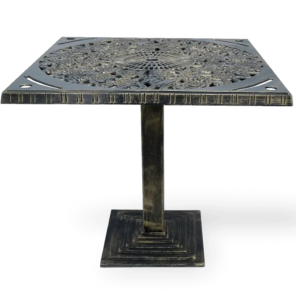 שולחן יציקת ברזל חזיר אלומיניום דקורטיבי בגודל 80 על 80 סנטימטר עשוי מיציקת אלומיניום, שהוא חומר עמיד ועמיד שיכול לעמוד בקיץ ובחורף מבלי להתפוצץ מהרוח בכל המקומות החיצוניים כמו בריכה, בית קפה, מסעדה, גינה.