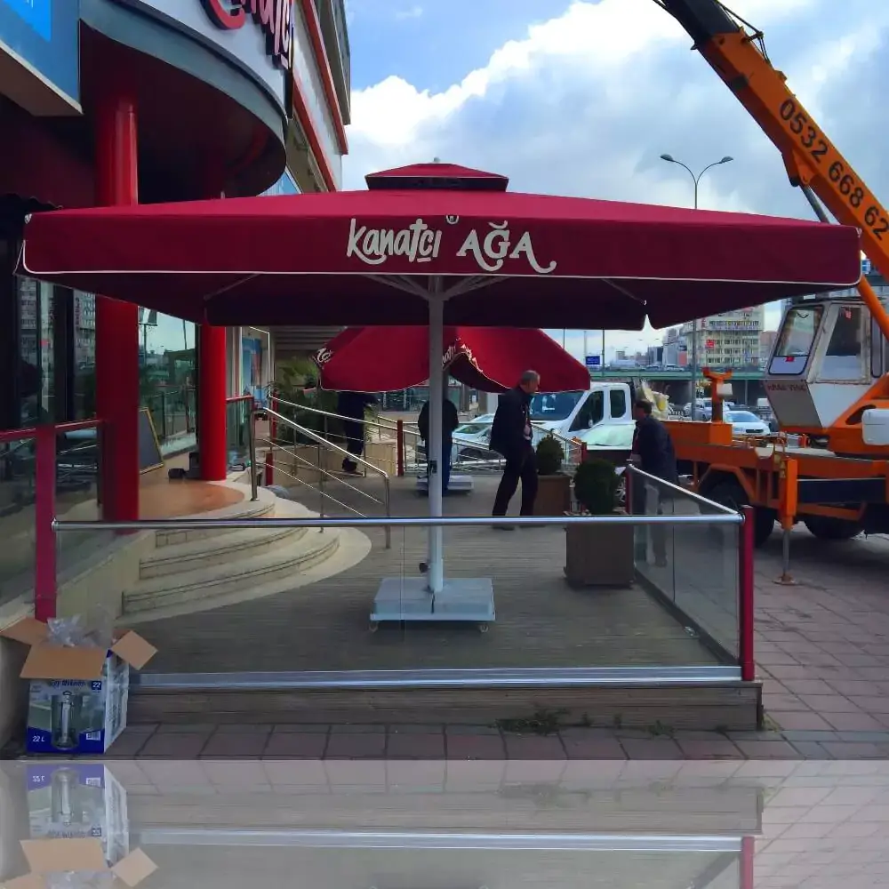 הרעיון להיפטר מהלחץ של העיר ולחזור לטבע... לפחות הלוואי שזה היה אפשרי בארוחת הצהריים או בארוחת הערב. מטריית גן הקפה בצבע אדמתי 450 על 450 סנטימטר מרובע 100 מ מ גוף אלומיניום כסף עבה, מערכת טלסקופית שתיקח אתכם לטבע ותזכיר לכם אדמה וחימר, מיוצרת מבד אקרילי. מטריית הסיפון, בעלת עמדה עמידה בפני רוח בזכות גופה העבה וכפות הרגליים או הרגליים המשוקללות משיש הניתנות לקיבוע לקרקע, היא בין המוצרים המועדפים ביותר על בתי קפה ומסעדות.