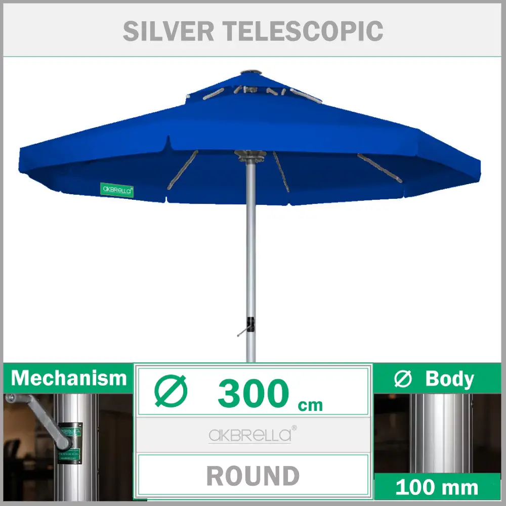 אתה יכול לבחור את הבד של מטריית גן קפה עם כחול עז 300 ס מ קוטר עגול 100 מ מ גוף עובי גוף אלומיניום כסף עם מערכת טלסקופית עשוי בד אקרילי בצבעים שאתה רוצה שמתאימים למקום שלך, אתה יכול לצבוע את הגוף בצבע שאתה רוצה. תוכלו ליצור איתנו קשר באמצעות וואטסאפ כדי לקבל מידע על מטריות ממותגות אקברלה המייצרות פתרונות מתאימים לחללים החיצוניים שלכם.