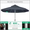I nostri ombrelli da bar, ristorante a marchio Akbrella possono essere preferiti come quadrati, rotondi e laterali per essere adatti alle dimensioni del tuo spazio esterno. l'ombrello cafe con sistema telescopico con corpo in alluminio argento rotondo da 600 cm di spessore 100 mm è un prodotto resistente sia al sole che al vento estivo e che puoi utilizzare per molti anni. La stampa del marchio e del logo della tua azienda può essere applicata sul tessuto acrilico a colori che scegli. È adatto come piede fisso con ruote e senza ruote come piede.