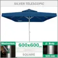 Ombrelli da giardino con corpo in alluminio quadrato 600x600 cm 100 mm di spessore con rivestimento anodizzato argento, che puoi scegliere in ristoranti, caffè e terrazze, sono ombrelli resistenti al vento e possono essere prodotti applicando la stampa del logo della tua azienda nei colori e nelle dimensioni desiderate su tessuto acrilico. Spingendo su e giù il sistema di ingranaggi a vite senza fine nel corpo in alluminio dei nostri ombrelli da bar ristorante con sistema telescopico, si assicura che l'ombrello sia facilmente aperto e chiuso. Il braccio allen situato al centro del corpo attiva il meccanismo all'interno del corpo quando viene ruotato. Gli ombrelli da caffè, che forniscono un uso pratico senza la necessità di sollevare i tavoli e le sedie circostanti, sono prodotti da tessuti acrilici 320 g / m2 importati dalla Spagna.