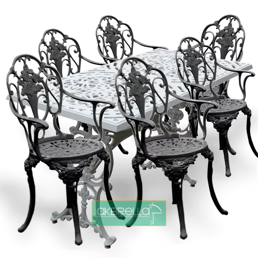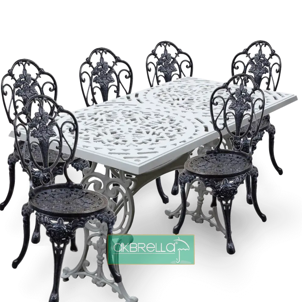 Se lo desideri, puoi trasformare il tavolo rettangolare bianco pressofuso in alluminio 60x120 cm Antique motif in una squadra scegliendo uno dei nostri modelli di sedia pressofusa in alluminio 4 o 6. I mobili da giardino, che possiamo produrre nei colori lucidi opachi o lucidi che desideri, ti permettono di fare piacevoli presentazioni nei tuoi giardini nelle sere d'estate. 120x90x60cm 32kg