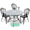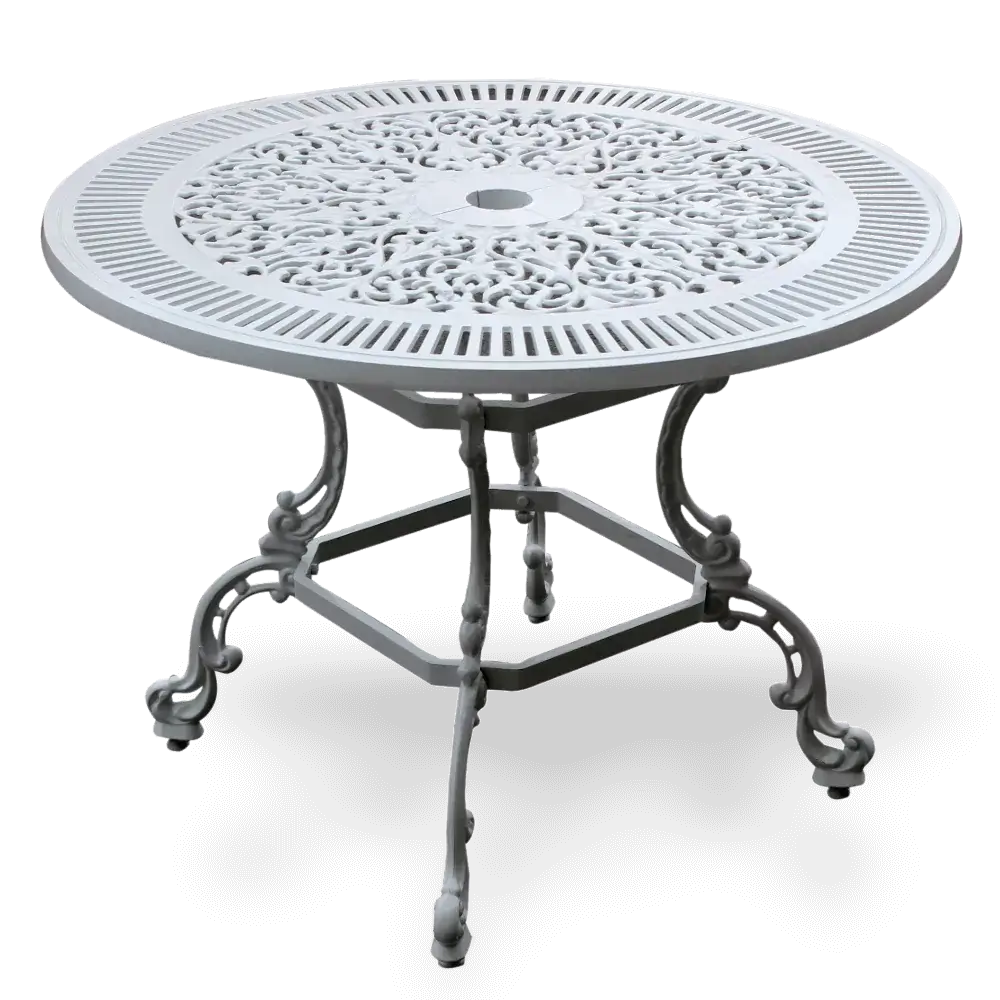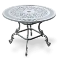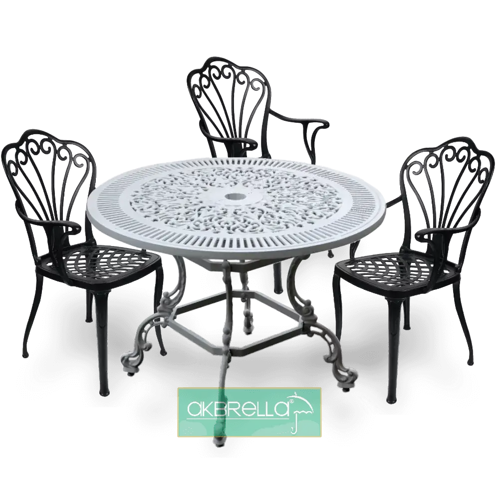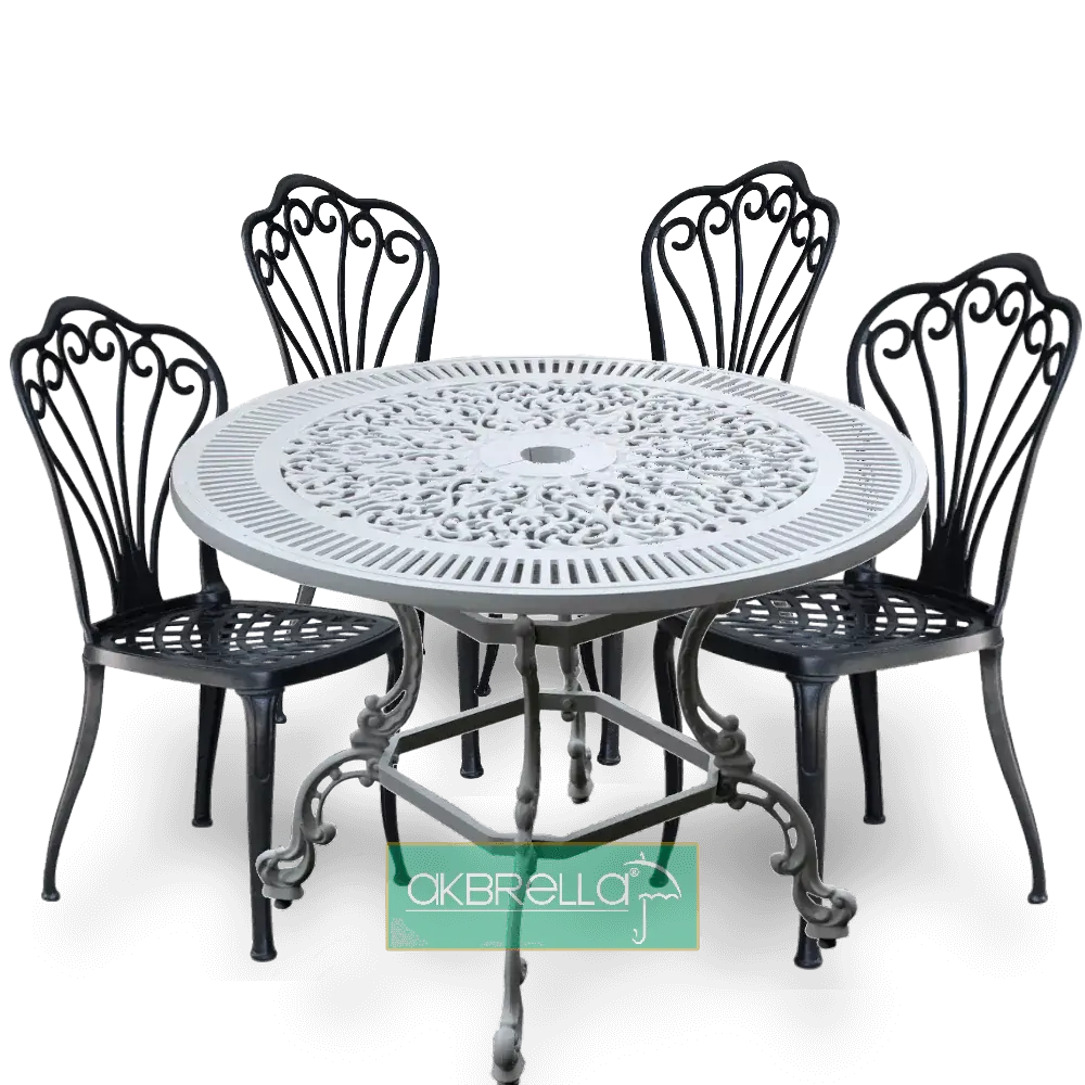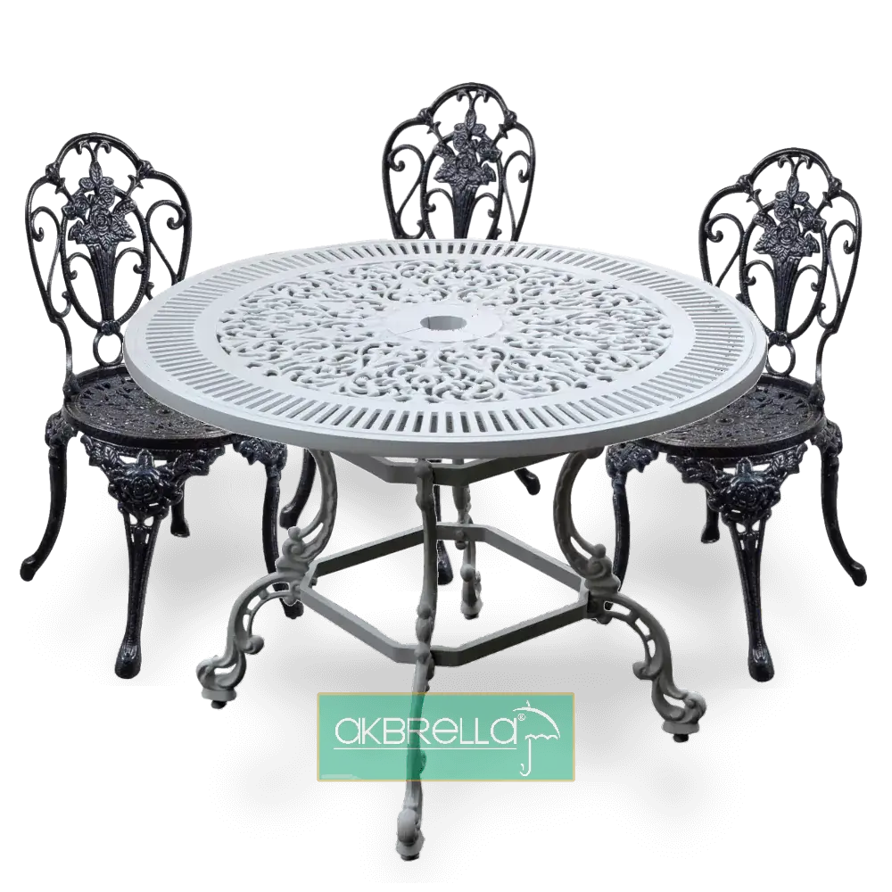 Tavolo rotondo in pressofusione di alluminio a 4 gambe con motivo in pizzo diametro 100 cm con modelli a 4 gambe diametro 90 cm e 75 cm diametro 3 gambe sono disponibili anche. È un prodotto elegante che può essere utilizzato come arredamento per interni sia in esterni che in cucine, sale. è possibile contattare i nostri rappresentanti clienti Akbrella per acquistare i nostri mobili da giardino in alluminio pressofuso, che hanno una garanzia di utilizzo di 2 anni. 100x74x100cm 26kg