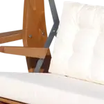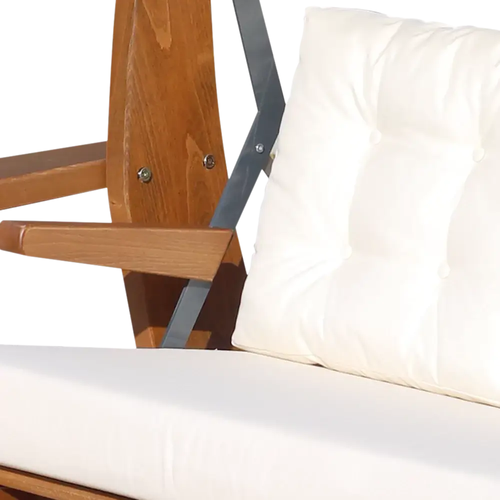 3 Kişilik Bold Salıncak fırınlanmış gürgen ağacından üretilmiş olup standart krem rengi minder ve ahşap kısımları ceviz rengi olarak gönderilmektedir. Güneş tentesi ve minderleriyle konforlu bir kullanım sunan bahçe salıncağı balkon, teras,bahçe kullanımı için uygundur.