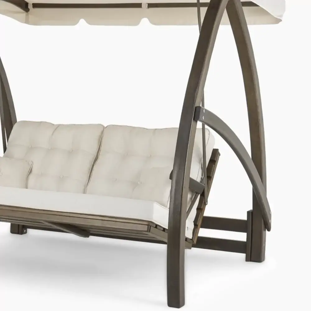 Hem iç mekanda hem de dış mekanda dinlenerek keyifli zaman geçirebileceğiniz 196x151x191 cm MDS 2 kişilik Elegance ahşap bahçe salıncağı ladin ağacından üretilmiştir. Olefin kumaştan üretilmiş oturma minderleri aşınmaya, güneş ışınlarına, lekelere, çürümeye karşı dayanıklı, kolay temizlenebilir özelliğe sahiptir.