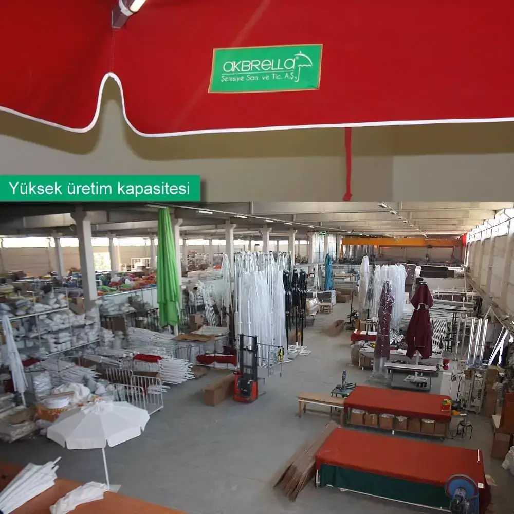 350x350 cm kare 60mm gövde kalınlıklı manuel teleskopik bahçe şemsiyesi cafe, restoran, otel, bahçe ve teraslarında kullanılabilmektedir. İthal İspanyol 320 g/m² akrilik kumaştan üretildiğinde bahçe şemsiyesi hafif rüzgarlı dış mekanlarınızda dayanıklı formunu daha da korur. Tekerlekli mermer ağırlıklı ayak ya da betona sabit dübelli ayak tercih edilebilmektedir.