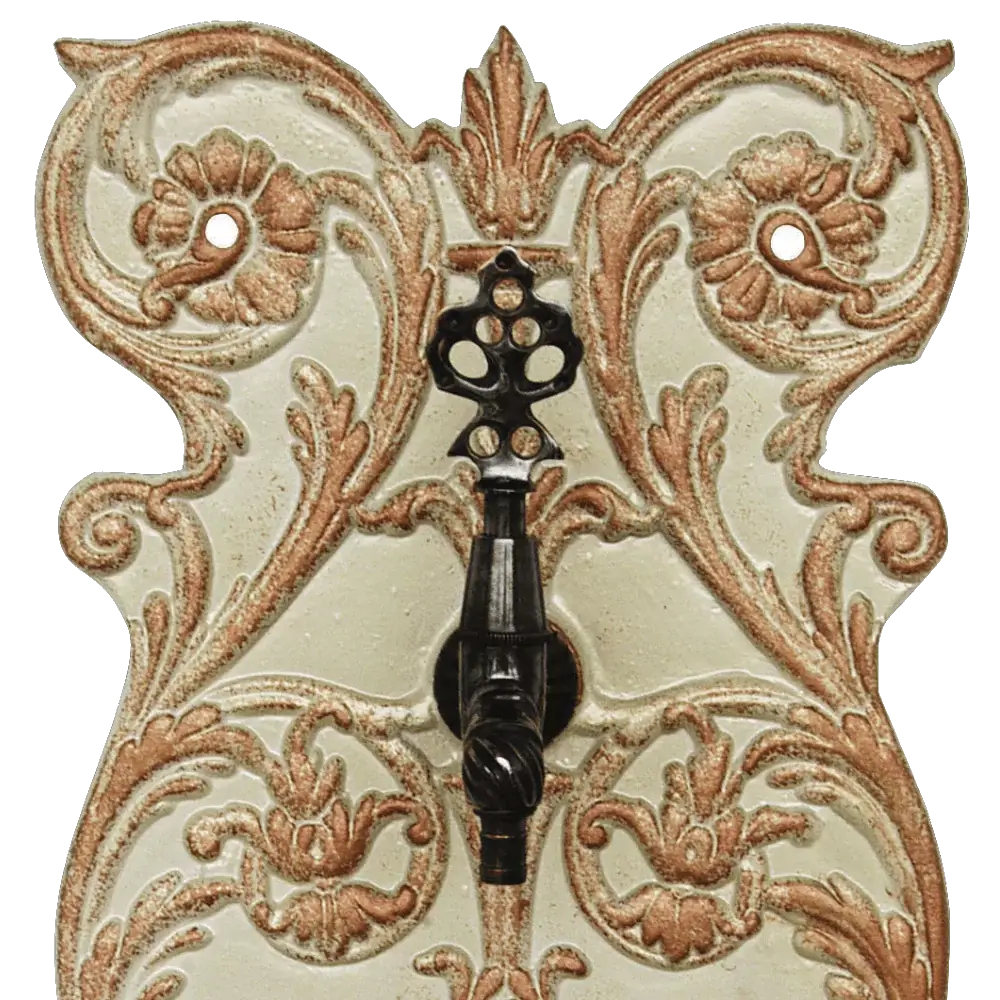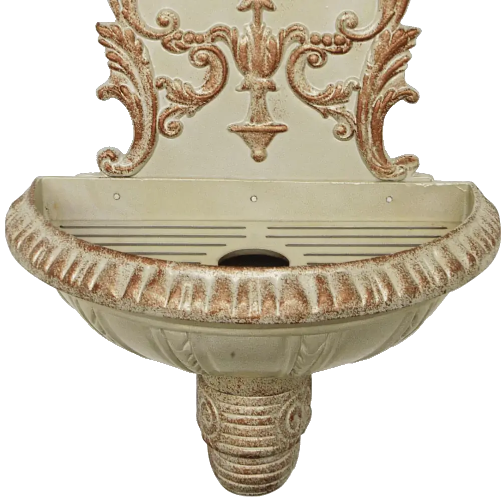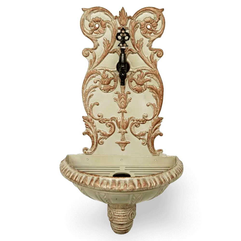 Çiçek Desenli krem üzeri kahve rengi patine alüminyum döküm duvar tipi bahçe çeşmesi %100 alüminyum döküm tekniği ile 1. sınıf kaliteli işçilikle üretilmiştir. Motifler ile zenginleştirilmiş lavabo hazneli, sarı pirinç musluklu alüminyum döküm bahçe çeşmesi dikkat çekici şık bir tasarıma sahiptir.2 yıl kullanım garantili ürün jelatin korumalı özel koli içerisinde iç bağlantı tesisatıyla birlikte gönderilmektedir.
