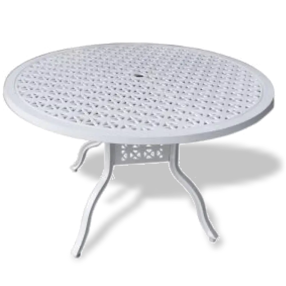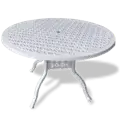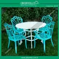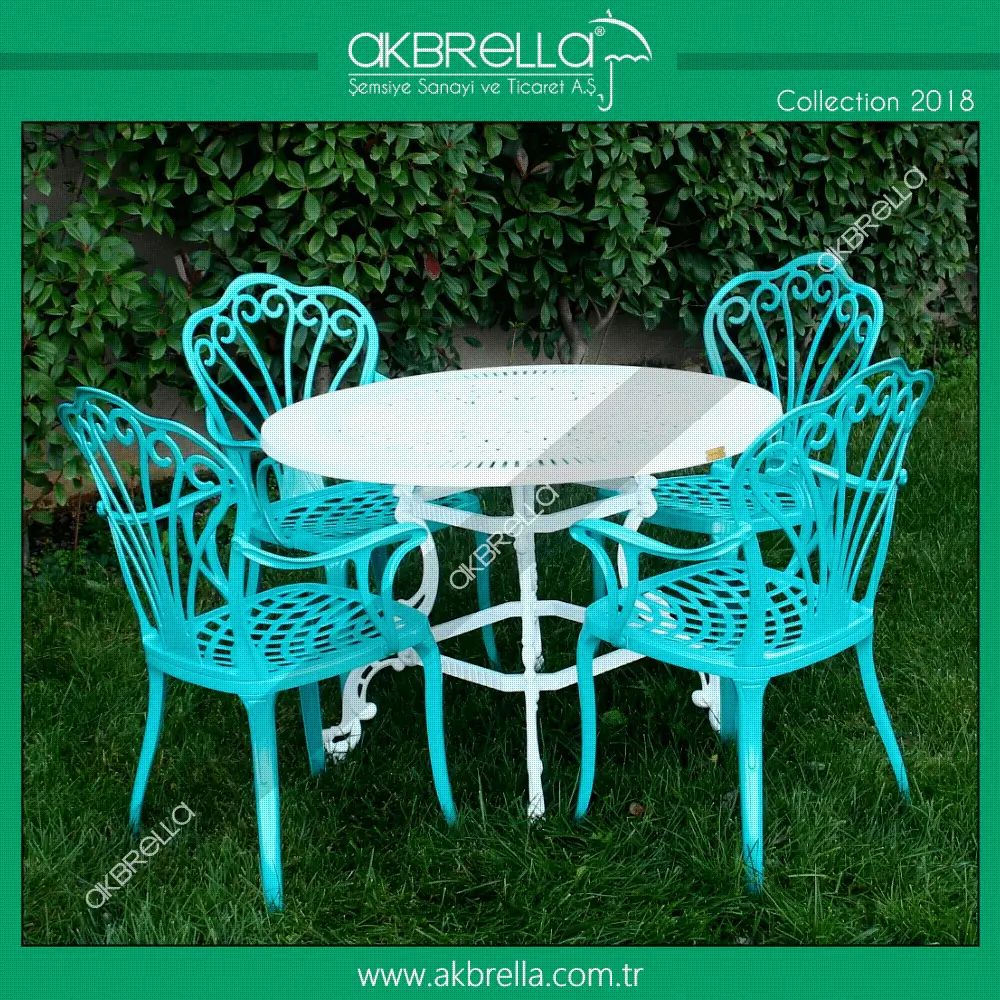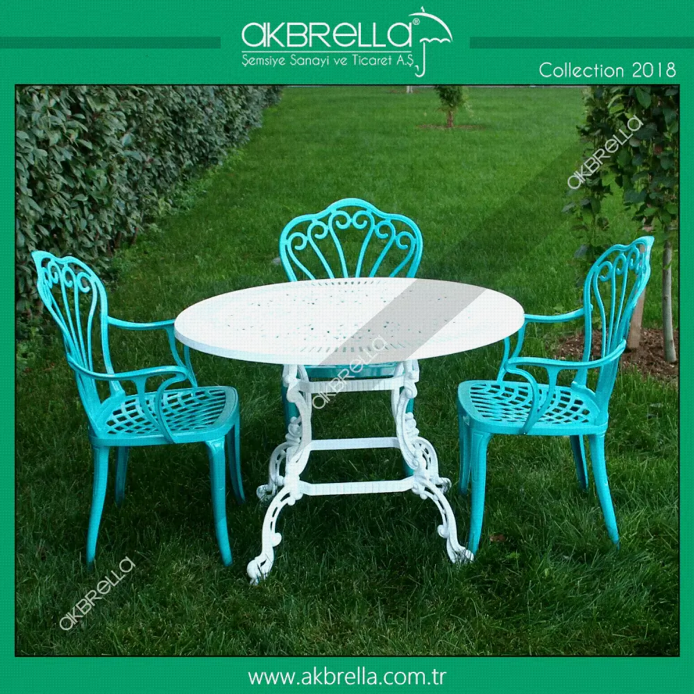 PG 7490 model 120 cm çap Delikli Dantel desenli beyaz alüminyum döküm yuvarlak masayla birlikte kollu veya kolsuz Tavus kuşu motifli veya Gül motifli alüminyum döküm bahçe sandalyelerini tercih ederek 4 kişilik bahçe takımı oluşturabilirsiniz. 120x90x120cm 29kg