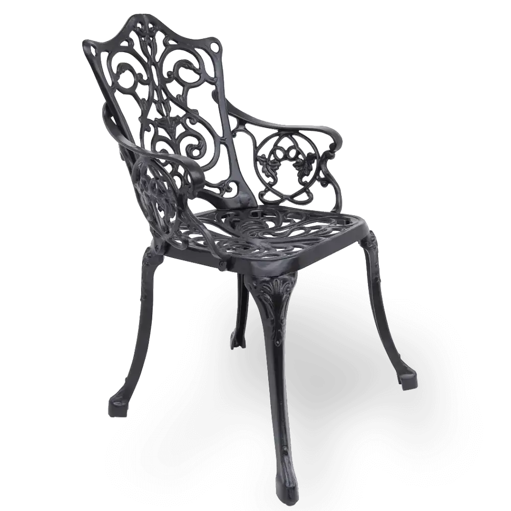 PG 7220 model Victorian Dantel işlemeli siyah alüminyum döküm kollu bahçe sandalyesi cafelerin, pastanelerin, profiterol evlerinin, trileçecilerin, modern kır kahvelerinin, butik otellerin, restoranların, bahçeli evlerin, iç mimarların ve peyzaj mimarlarının tercihi. 2 yıl kullanım garantisi olan döküm bahçe sandalyesini satınalmak için Akbrella müşteri temsilcilerimizle iletişim kurabilirsiniz. 54X90X56CM-7.8KG