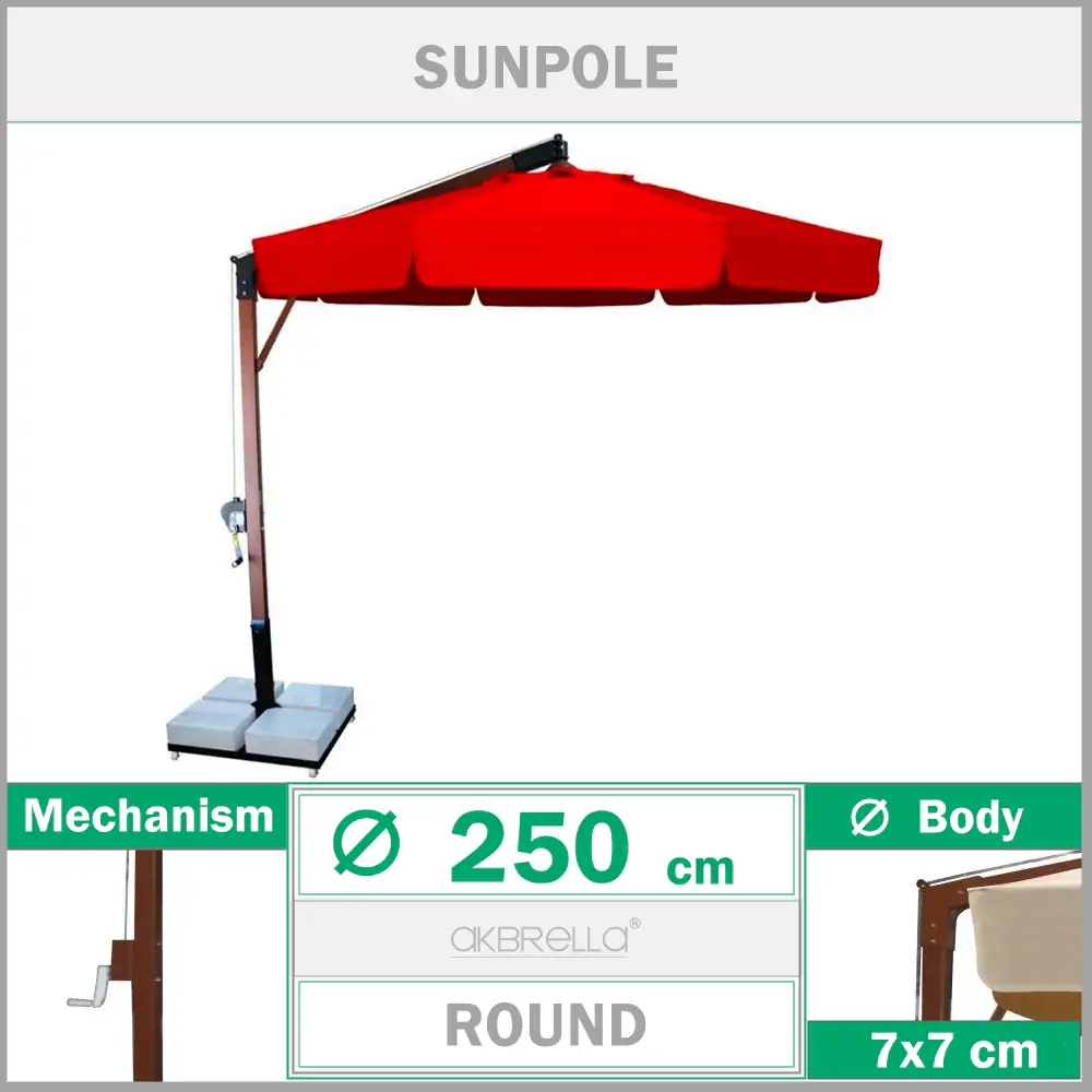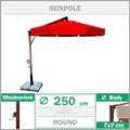 250 sm diametrli dumaloq 7x7 sm korpus qalinligi, karniz modeli alyuminiy yon tanasi bog ' soyaboni rolikli tizim yordamida osongina ochilishi va yopilishi mumkin. Tor joylarda, balkonlarda, teraslarda foydalanish uchun mos va amaliy bo'lgan bog ' soyaboni akril va polyester matodan turli o'lchamdagi, yumaloq va kvadrat shaklida ishlab chiqarilishi mumkin.